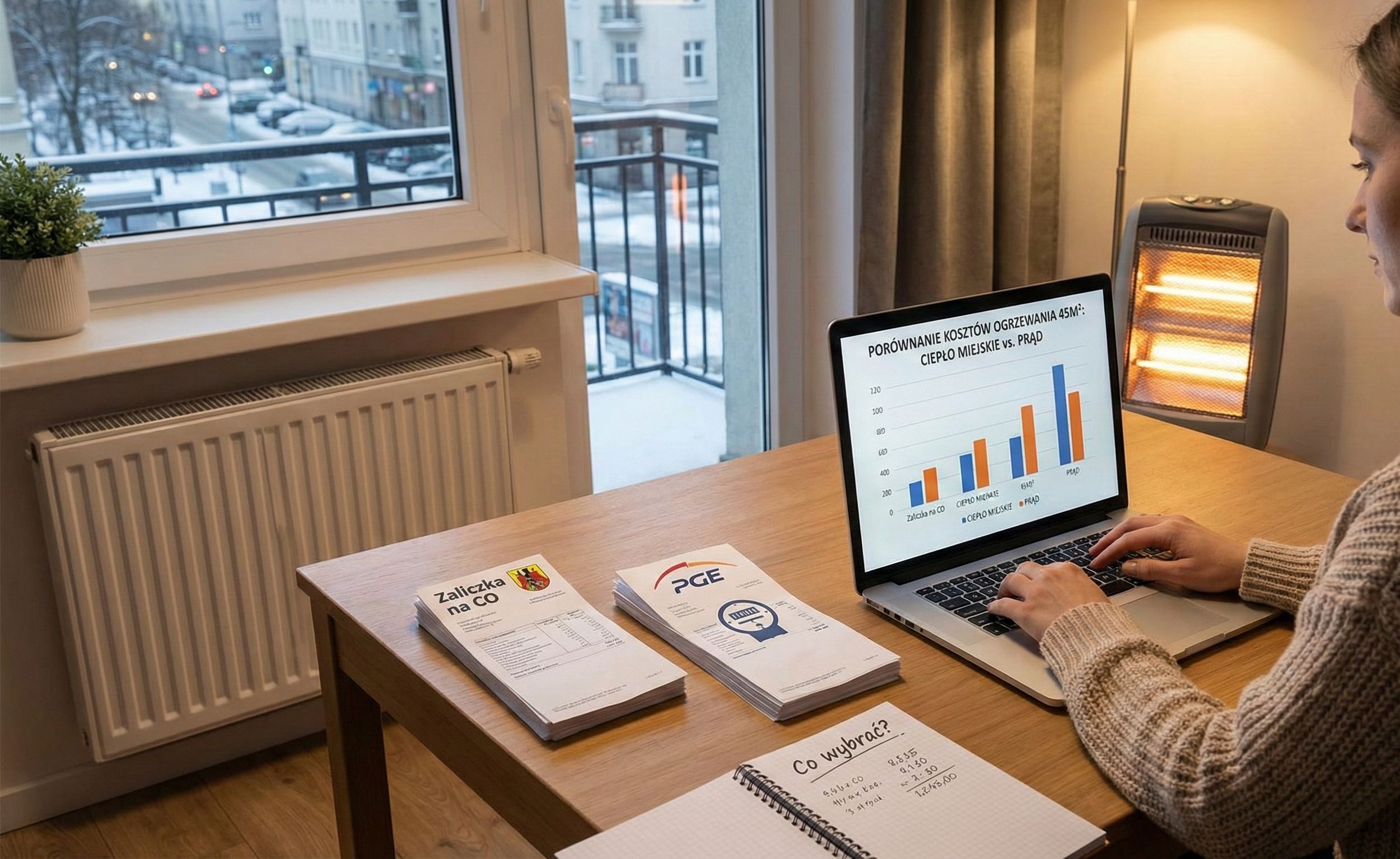 Ile naprawdę kosztuje ogrzewanie mieszkania 45m2? Ciepło miejskie vs. prąd – co wybrać?